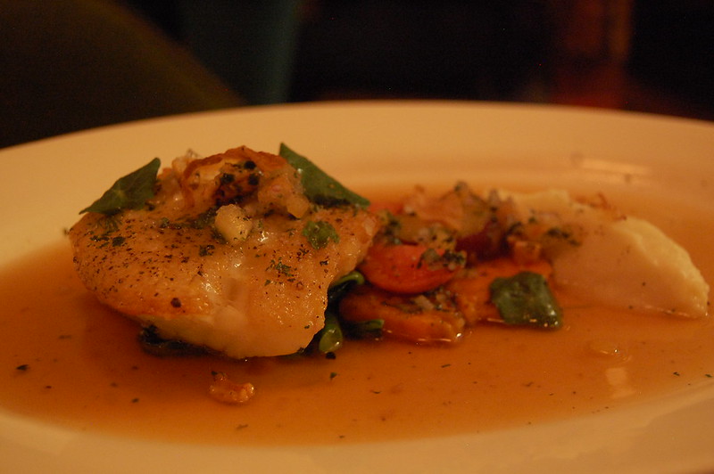 Krosses Wolfsbarschfilet auf Fenchel in Safransud mit Lavendelnocken