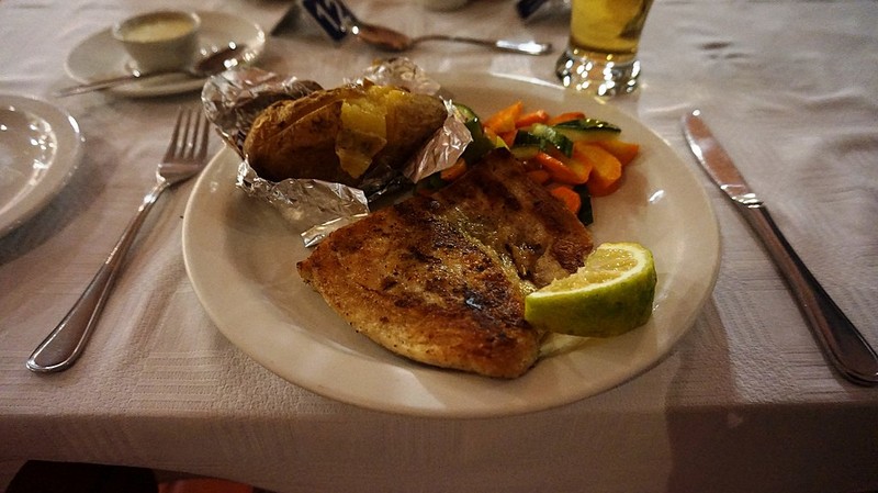 Viktoriabarsch mit Frühlingsgemüse in Folie gegart