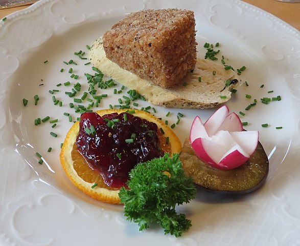 Edamer in Mandelkruste mit Beerenkompott