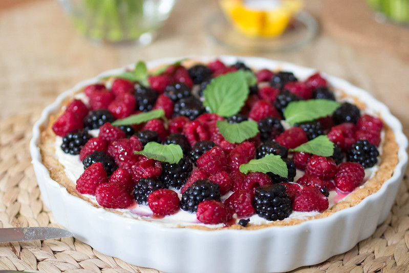 Biskuitrolle mit Sauerkirschen und Limettensahne